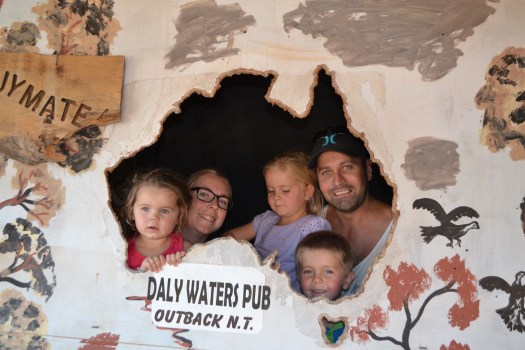 No wonder we were tired. After travelling from Jindivick to Melbourne to Sydney to Darwin to Townsville in 5 days. We must be crazy. Or is it cheating to count 5000 of those kms that were in an aeroplane!!! Even if we deduct the flights and the measly 200kms from Darwin to Pine Creek, we averaged 575km/day for 4 days and the kids did great. Also crammed in there were swims at Mataranka, a visit to the quirky Daly Waters Pub, many Dinosaur sightings and a Dinosaur museum on the “Dinosaur trail” and quite a few playgrounds got a workout including a big one in Mt Isa.